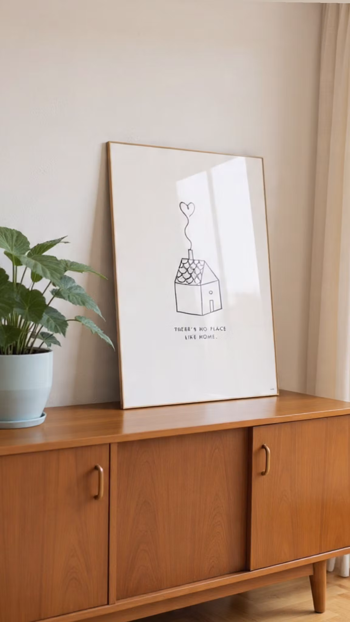 Ett print för dig som älskar att vara hemma. Välj texten själv. Du kan också lämna den tom för att vara utan text.Häng den i hallen kanske? Fin att rama in med passepartout eftersom trycket är utfallande.
